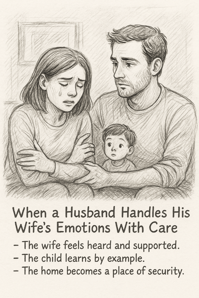 In every family, emotions don’t just sit still—they move, echo, and ripple. They rise in one person and quietly fall on another. And within the quiet corners of a home, the way a husband handles his wife’s emotions can shape the emotional climate not just for her, but for their children too.