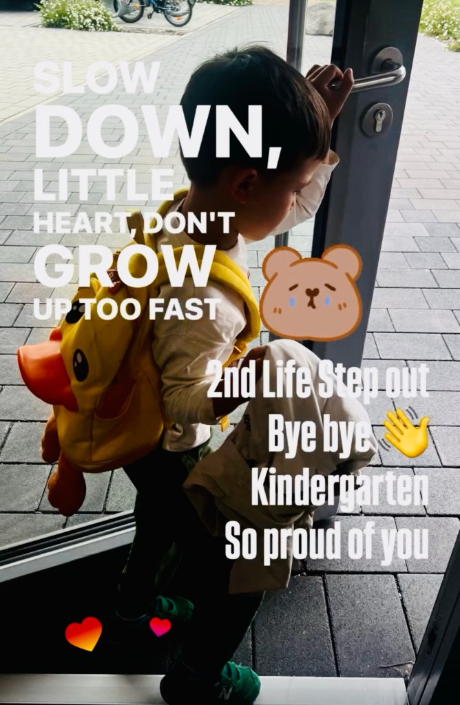 I couldn’t help but think back to the very first time he stepped into kindergarten. It was a slow process. One hour at first, then two, gradually building toward a full day. It wasn’t a sudden break, but a gentle separation—one that gave him space to adapt, and me time to let go. Every day I told myself, “This is good for him. He needs to grow into his world.” But every time I walked away, there was a part of me that ached.